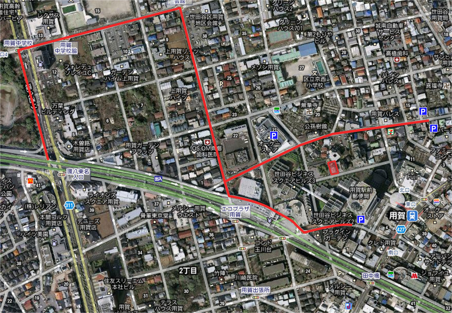 首都高速3号線「用賀I.C.」・東名高速「東京出口」下車、車で5分